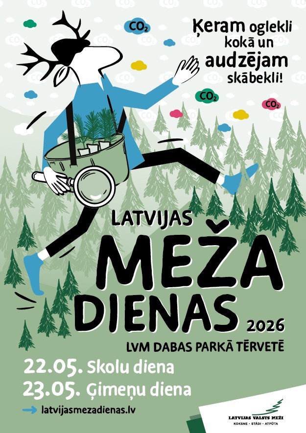 AS "Latvijas valsts meži" (LVM) aicina skolas, ģimenes un citus dabas draugus doties uz vērienīgo meža izziņas festivālu "Latvijas Meža dienas", kas notiks 2026. gada 22. un 23. maijā LVM dabas parkā Tērvetē. Šī gada vadmotīvs ir "Ķeram oglekli kokā un audzējam skābekli", jo pasākuma laikā iestādīsim vairāk nekā 10 000 jaunu kociņu!